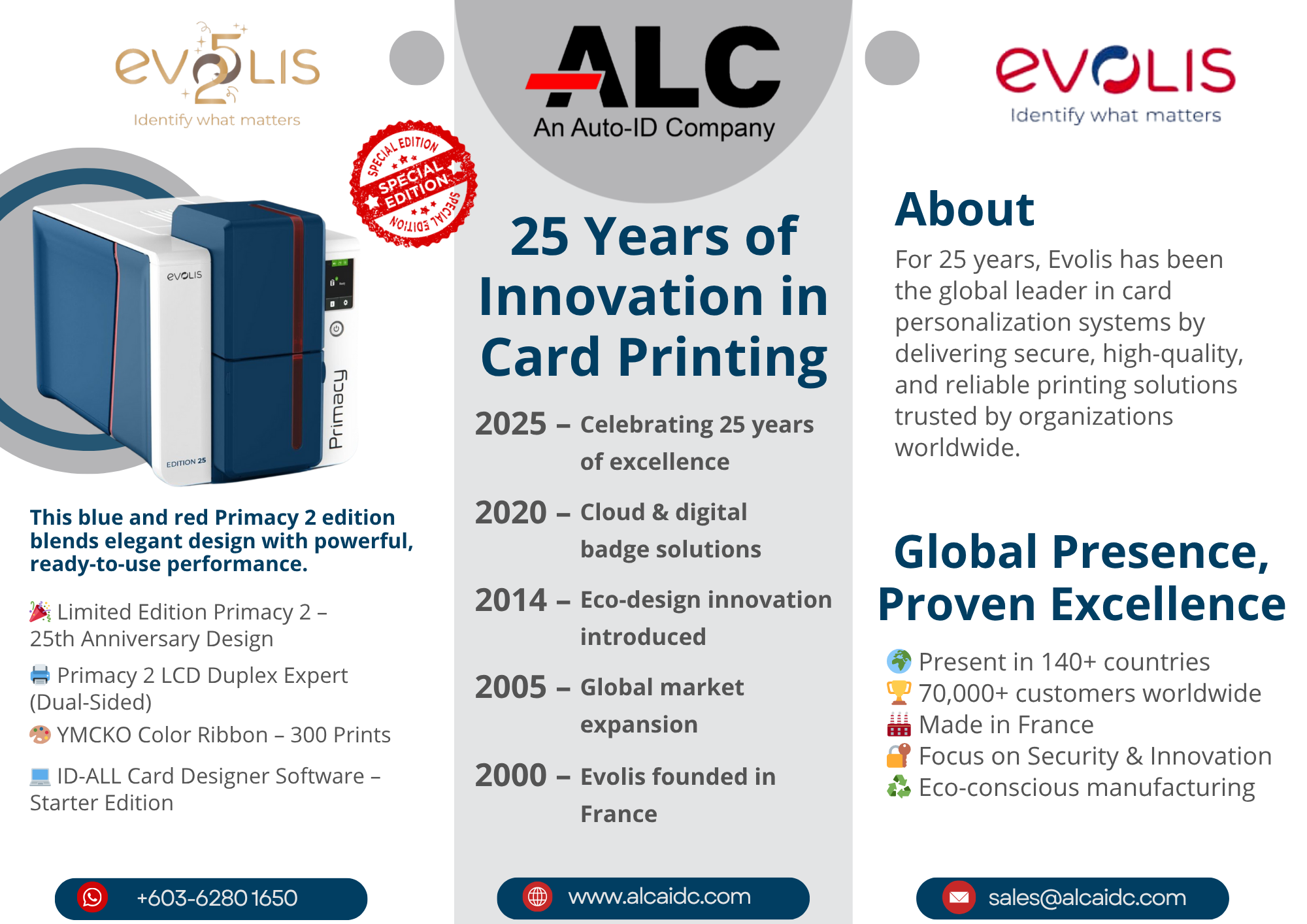 This commemorative release reflects Evolis’ 25 years of global success, trusted by organizations in over 140 countries and we are proud to bring this milestone edition to our customers in Malaysia.