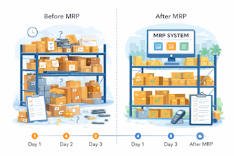 MRP works by combining customer demand, bills of materials (BOM), and current inventory levels to calculate what to buy or produce and when. It helps prevent material shortages, overstocking, and production delays, making operations more efficient and predictable. MRP is commonly used in manufacturing, assembly, and supply‑chain‑driven environments.
