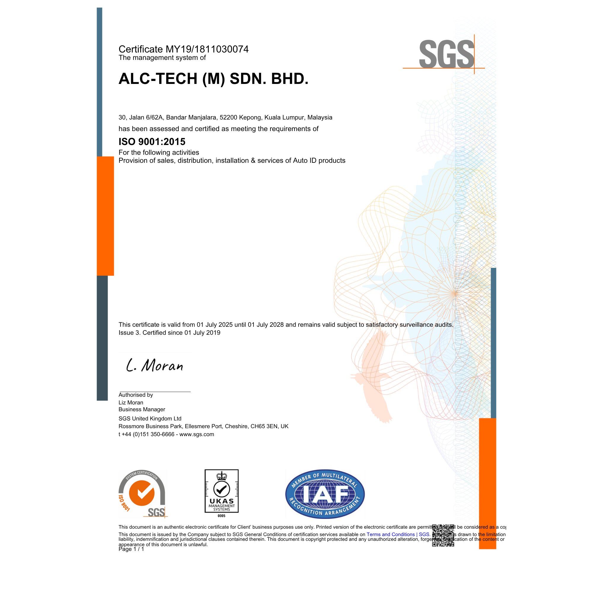 17/Oct/2025   ALC-TECH (M) SDN. BHD. ISO 9001:2015 Certification Renewal .....