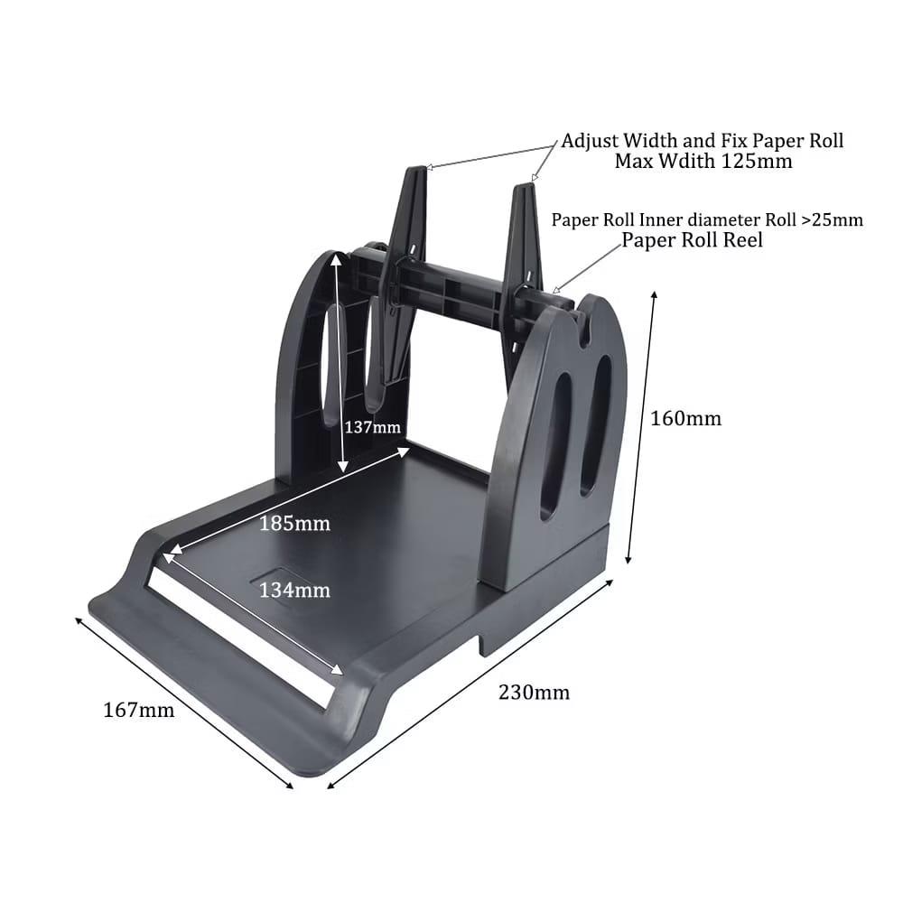 Make from solid plastic material, external media stacker give you flexibility on using bigger roll of label on Argox desktop version label printer. Able to take up 1 inch, 2 inch and 3 inch core label with maximum outer diameter up to 8.5 inch. Adjustable media width allow label width up to maximum 4 inch.