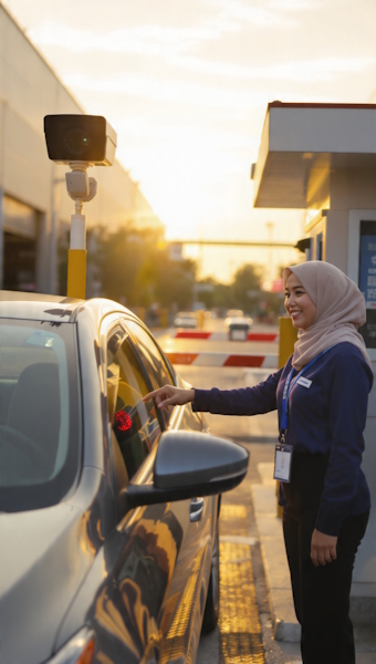 The system automatically captures vehicle license plates using strategically placed cameras at entry and exit gates. Optical Character Recognition (OCR) and AI-based image processing then translate the plate image into readable digital text. Once identified, the vehicle information is instantly recorded in the WMS and linked to relevant operational documents such as inbound delivery orders, outbound shipments, gate passes, or driver records. This ensures real-time synchronization between physical vehicle movement and system data.