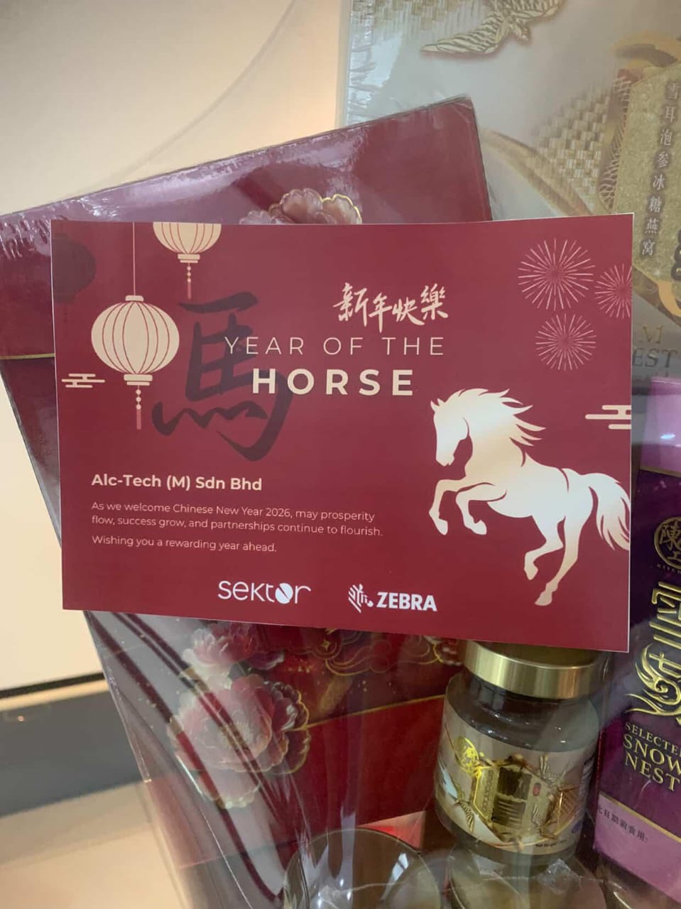 A Heartfelt Thank You for the Chinese New Year GiftAs we welcome the Year of the Horse, ALC-TECH (M) SDN BHD would like to extend our sincere appreciation to our valued partner, Zebra Technologies, for the thoughtful Chinese New Year gift and warm festive wishes.