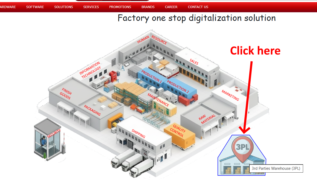 Understand more about AGen 3rd parties logistic activity after factory produce itemVisit www.alcaidc.com Solutions Menu --> Factory Digitalization --> Overall or you can go from Solution Menu --> Warehouse -->AGen WMSyou will see the whole factory sample layoutSelect the 3rd Parties Warehouse (3PL) iconExplore each activity happen at 3rd Parties warehouse (3PL) Stay tune for new retail solution