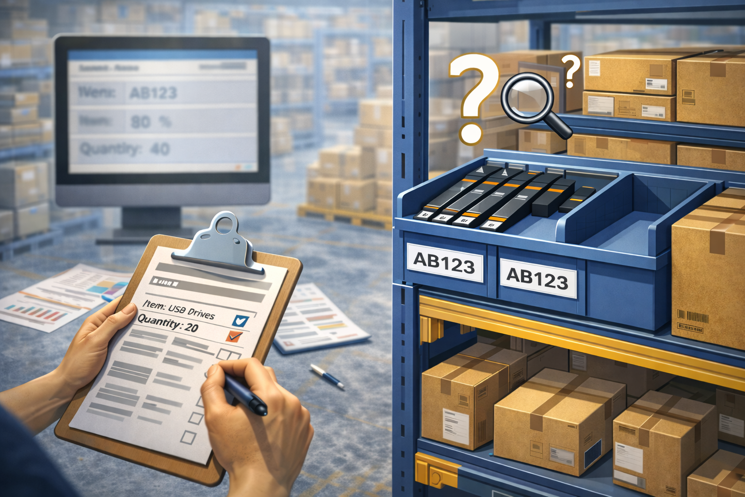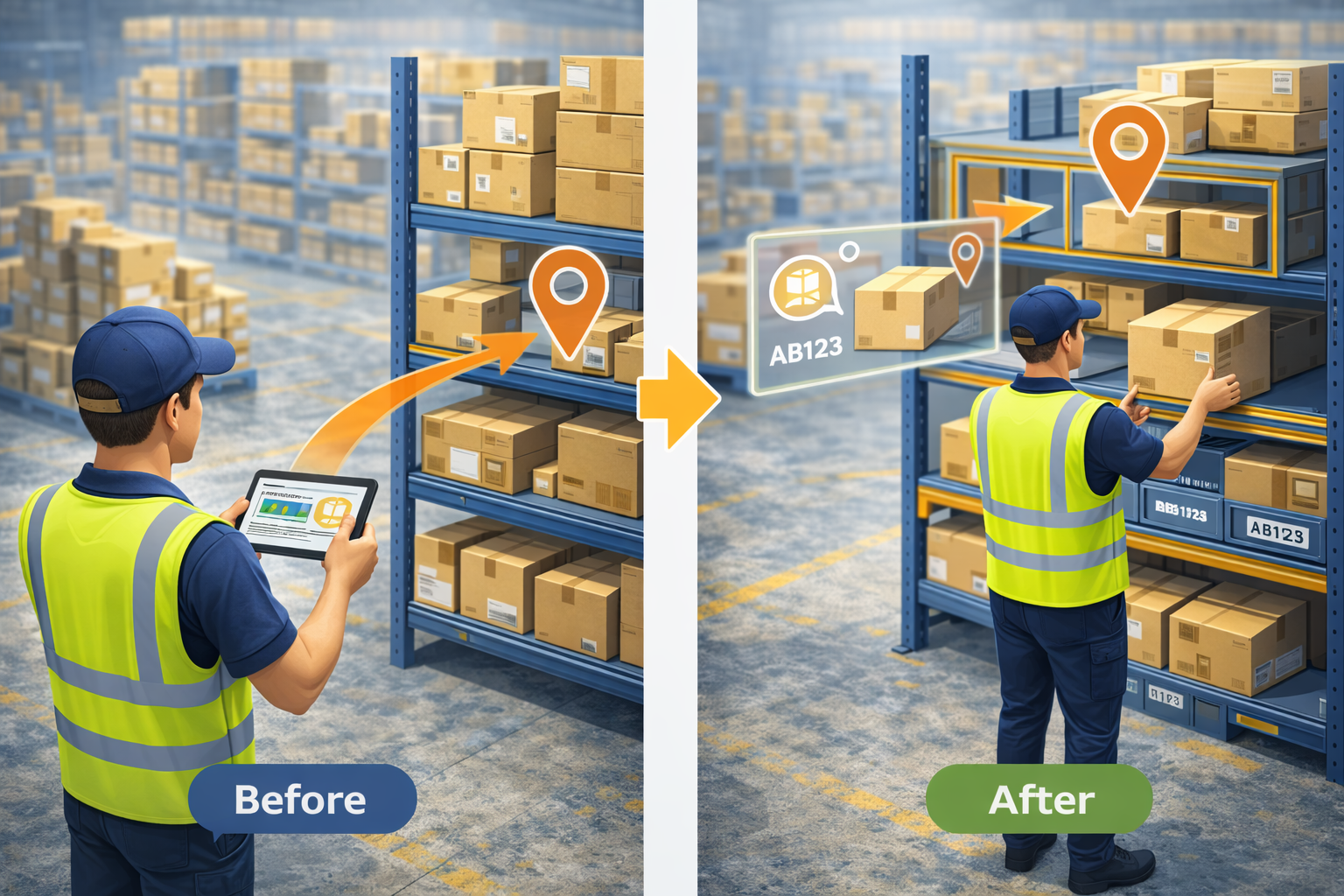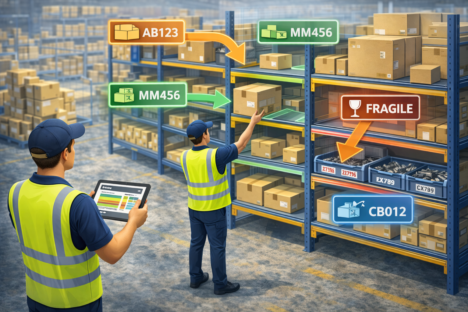 ( Operators receive clear instructions on what item to store and where to store it)