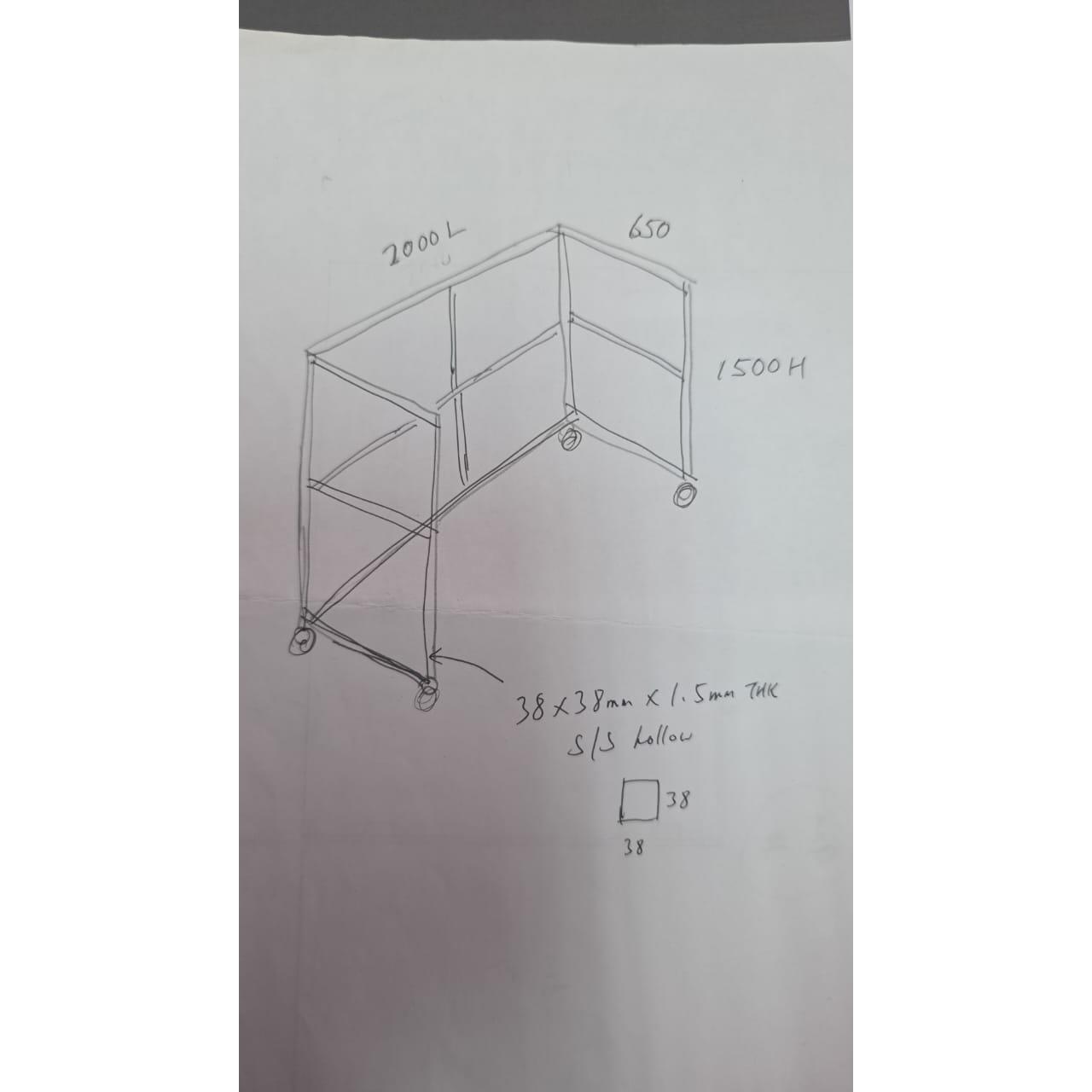 Local custom made design STAINLESS STELL FRAME 650MM(W)X2000MM(L)X1500MM(H) 38MM×38MMX1.5MM THK S/STEE COVER ROLLER C/W BRAKE 2" ROLLER WITHOUT INSTALLATION