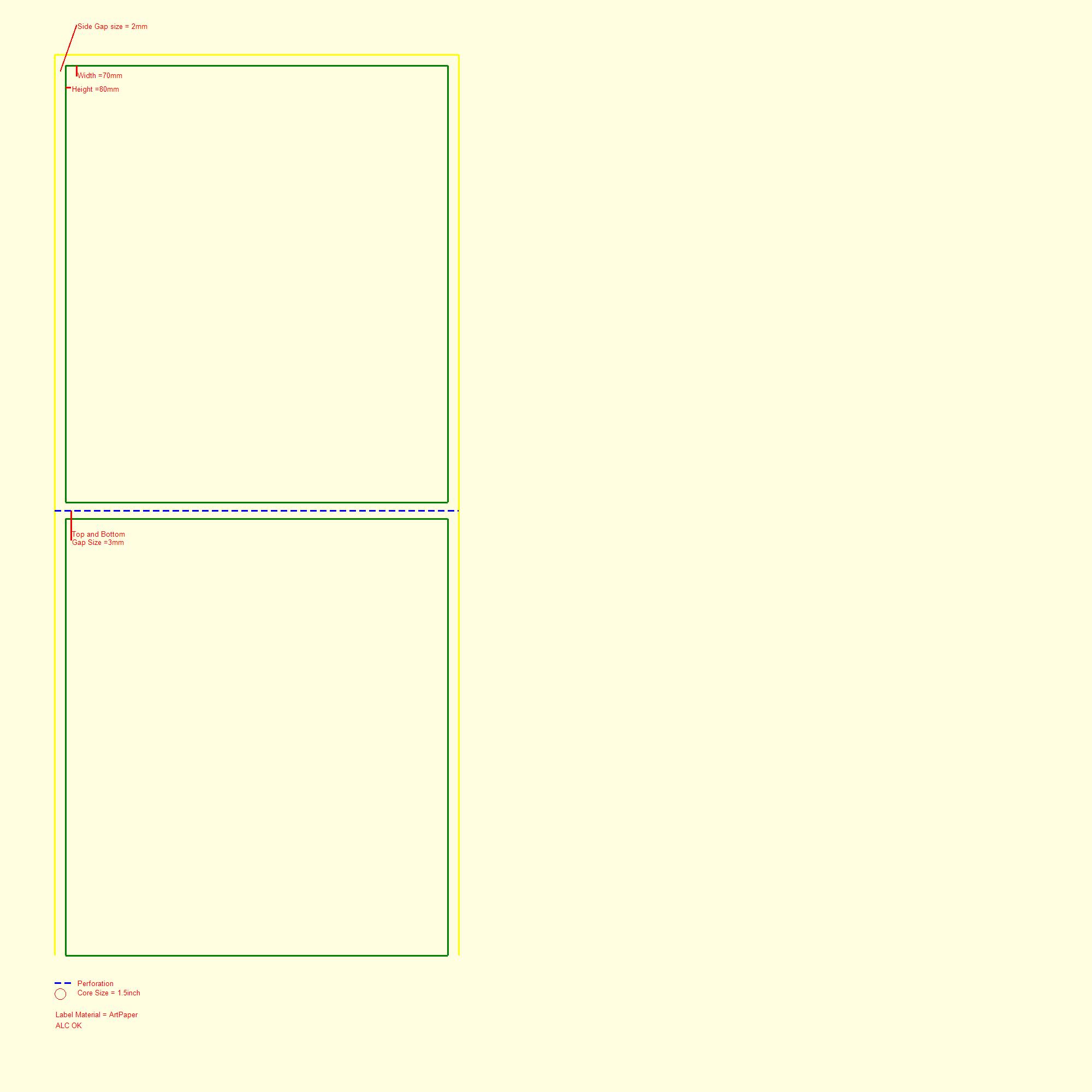 APAW (W)70MMX(H)40MMX1000PCS/ROLL 1UP 1INCH CORE GAP WITH PERFORATION ARTPAPER