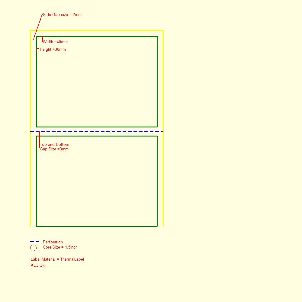 TL (W)40MMX(H)20MMX1000PCS/ROLL 1UP 1.5INCH CORE GAP WITH PERFORATION THERMALLABEL