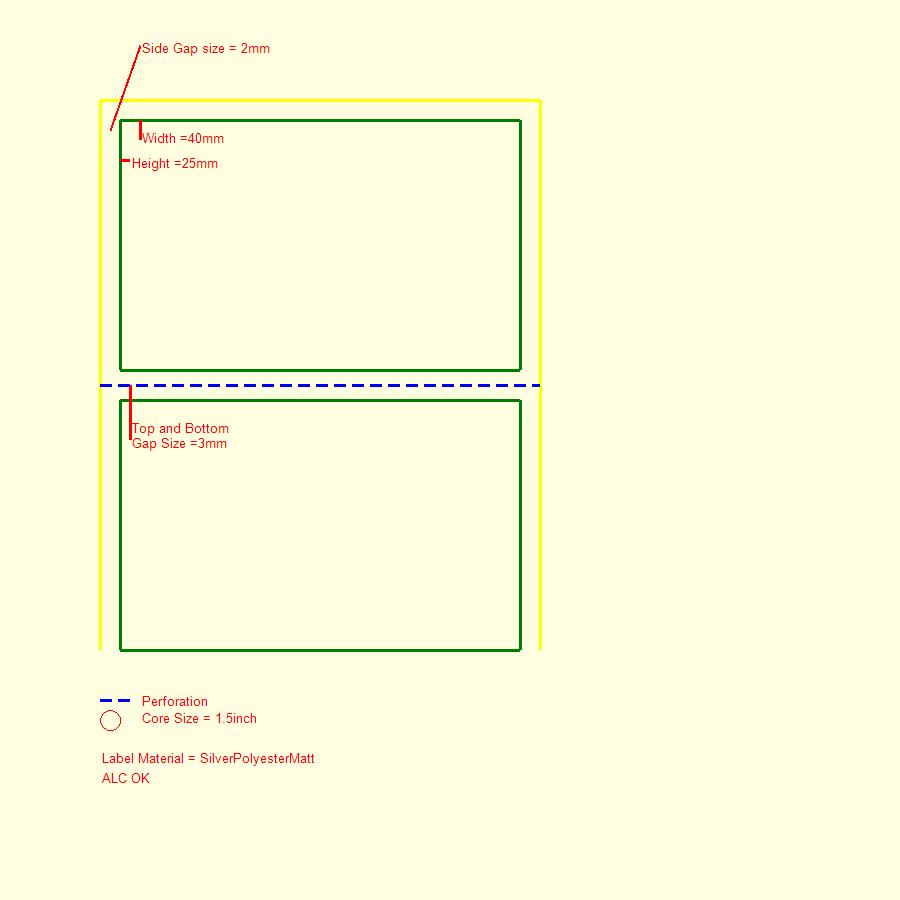 SP (W)55MMX(H)25MMX1600PCS/ROLL 1UP 1.5INCH CORE GAP WITH PERFORATION SILVERPOLYESTERMATT