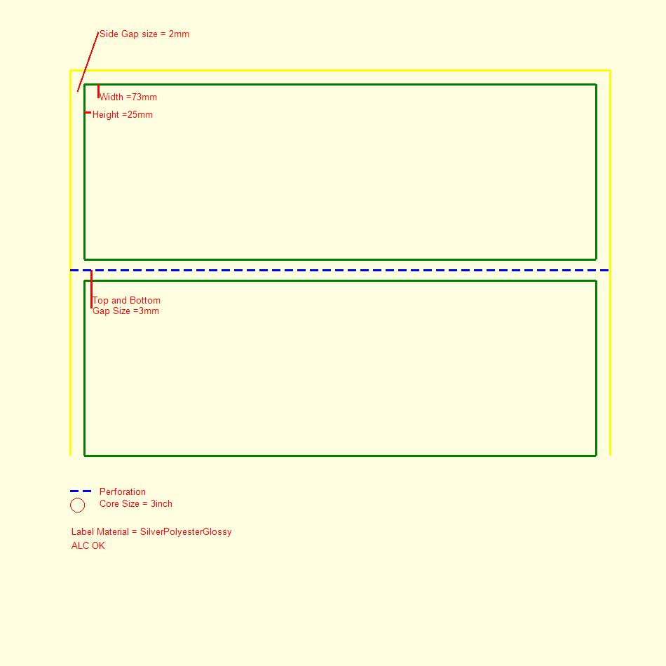 SPG (W)100MMX(H)70MMX1200PCS/ROLL 1UP 3INCH CORE GAP WITH PERFORATION SILVERPOLYESTERGLOSSY