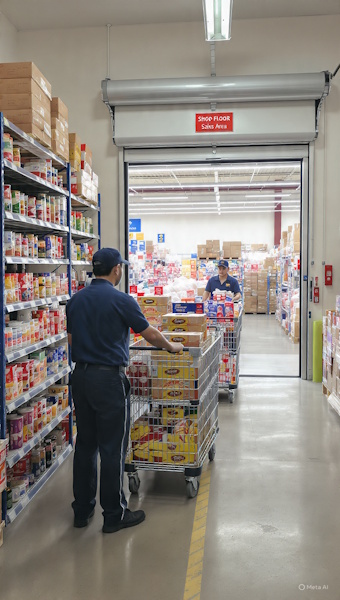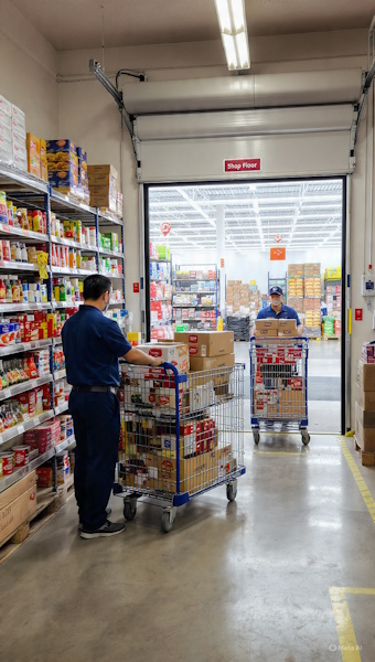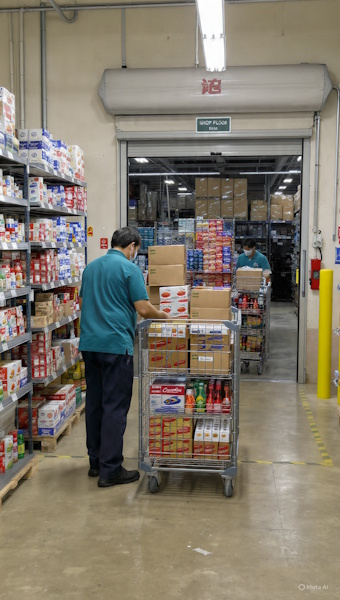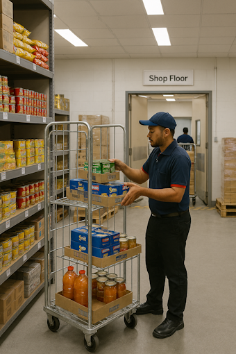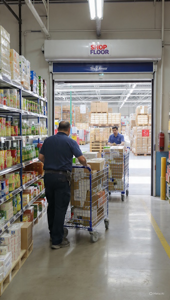 Shopfloor shelf replenishment from a supermarket or retail store receiving warehouse is a core operational process that directly influences product availability, customer satisfaction, and store profitability. This process involves transferring goods from the receiving warehouse or backroom storage area to the sales floor in a timely, accurate, and efficient manner. As products arrive from suppliers or distribution centers, they are inspected, recorded, and stored temporarily before being dispatched for shelf replenishment according to demand patterns and stock thresholds.