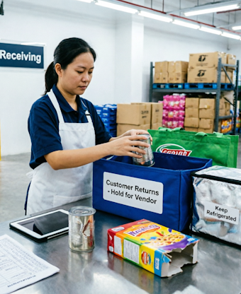 Once accepted, returned goods are transferred to the receiving warehouse or designated backroom area for further handling. In a supermarket receiving warehouse, returns are usually consolidated in larger volumes and processed systematically. Items are inspected to determine their condition and categorized accordingly—whether they can be restocked, require disposal, or need to be returned to the supplier. Accurate recording in the system is crucial to maintain inventory accuracy and ensure proper financial reconciliation.