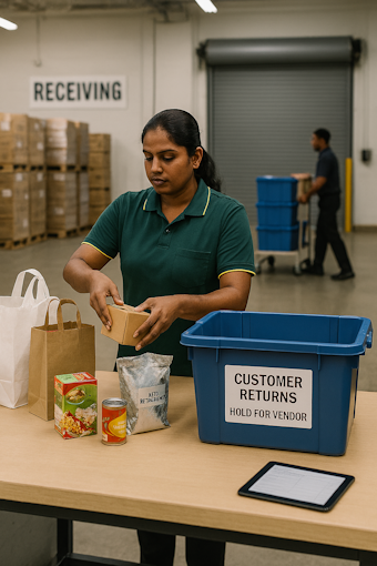 Return from Customer is an essential reverse logistics process in supermarket receiving warehouses and retail store receiving warehouses, ensuring that products returned by customers are properly managed, assessed, and reintegrated into the supply chain where applicable. This process typically begins at the customer service counter or returns desk, where items are received along with proof of purchase and the reason for return, such as defects, damages, incorrect items, or customer dissatisfaction.